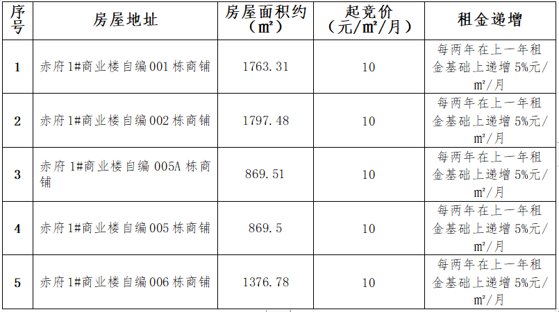 赤府安置房小區獨棟商鋪租賃競拍規則