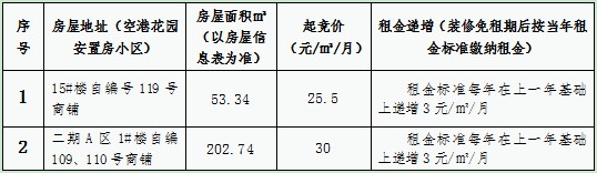 空港花園安置房小區3間房屋租賃競拍公告