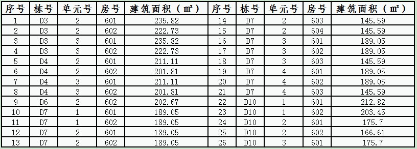 | 32 | 商業(yè)2#-4-1- 0101 | 82.13 | 72 | 商業(yè)2-5#-1- 0118 | 46.52 | 112 | 商業(yè)2-7#-1- 0116 | 43.18 |
