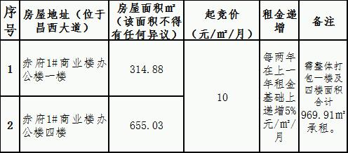 赤府安置房1#商業辦公樓一樓及四樓整體打包租賃競拍公告