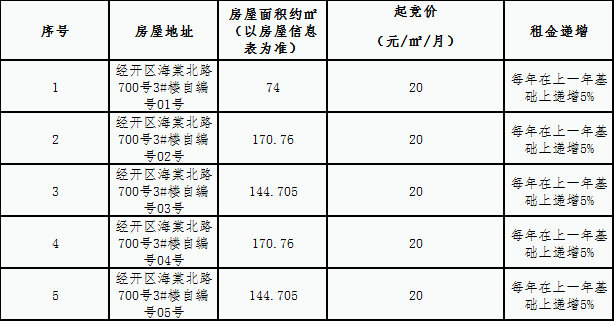 三、本次競拍每間商鋪租金起競價如下: