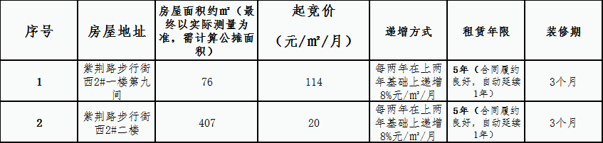 紫荊路步行街西2#一、二樓房屋租賃 競拍公告