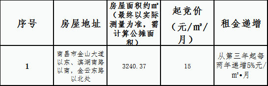 七、報名時間:發布公告之日起7個工作日為一個競拍周期,每個競拍周期滿后若收到超過3人報名則組織競拍,若未收到3人報名則進入下一個競拍周期,將在南昌金開集團有限公司微信公眾號公布租賃商務條款的調整信息。