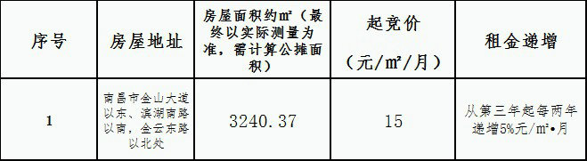 七、報名時間:自2023年7月4日起至2023年7月10日止,發布公告之日起7個工作日為一個競拍周期,每個競拍周期滿后若收到超過3人報名則組織競拍,若未收到3人報名則進入下一個競拍周期,將在南昌金開集團有限公司微信公眾號公布租賃商務條款的調整信息。