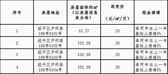 3、根據房屋信息表編號按順序招租(原則上不隔開租賃),且所有商務條件均優先于承租面積大的承租戶,以繳納相應保證金時間排序。