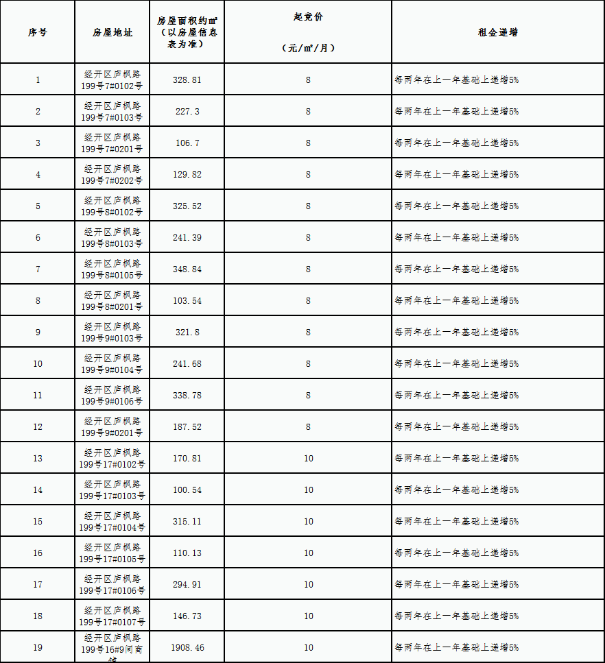 3、根據房屋信息表編號按順序招租(原則上不隔開租賃),且所有商務條件均優先于承租面積大的承租戶,以繳納相應保證金時間排序。