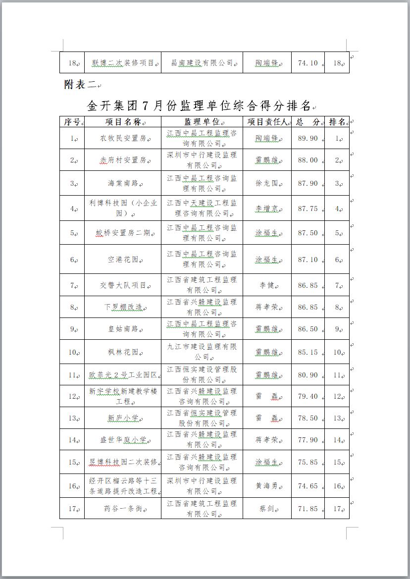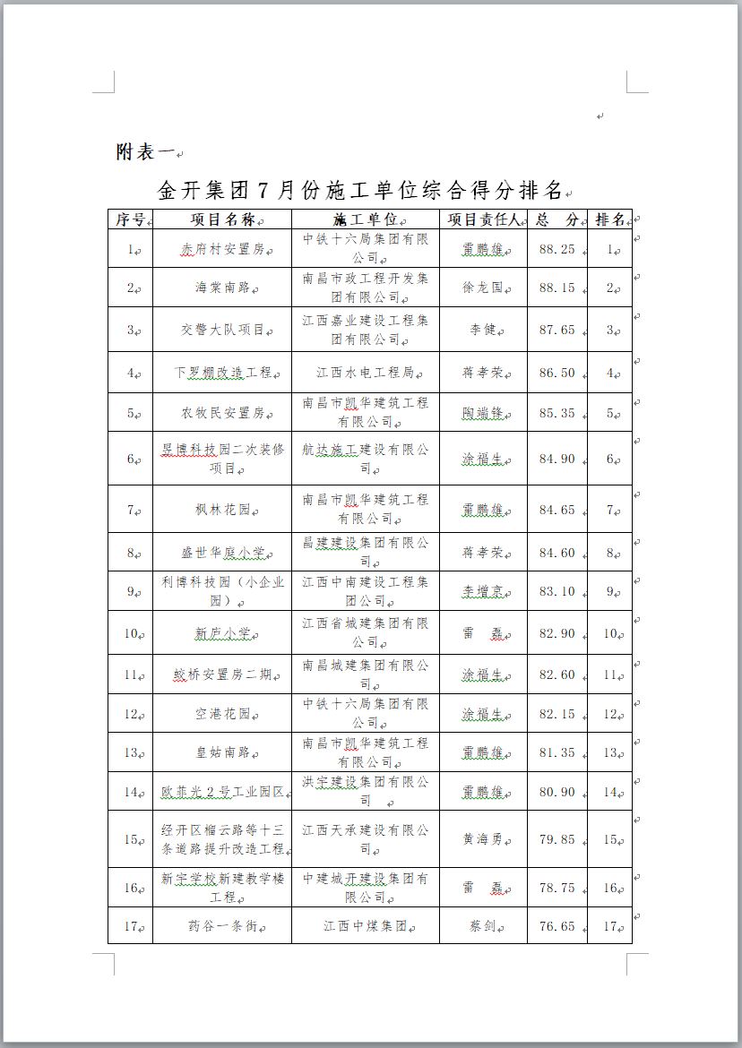 金開集團(tuán)在建項(xiàng)目2017年7月施工、監(jiān)理單位考核排名通報(bào)