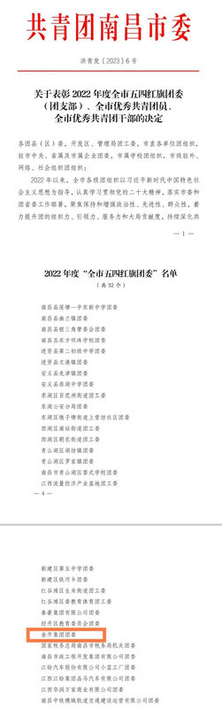 “五四”前夕,共青團南昌市委下發了《關于表彰2022年度全市五四紅旗團委(團支部)、全市優秀共青團干部、全市優秀共青團員的決定》。集團團委喜獲2022年度“全市五四紅旗團委”榮譽稱號。