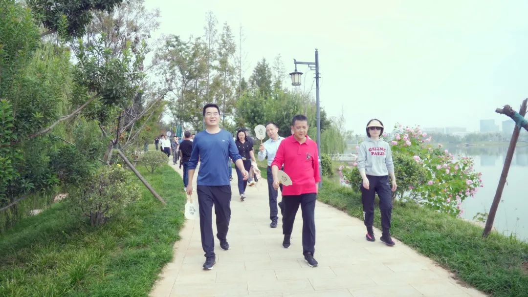 揭牌儀式結束后,俱樂部首場活動——多彩金秋健步走成功舉辦。江西銀行總行行長駱小林,區黨工委委員、管委會副主任賀敏受邀出席活動,經開產業控股集團、江西銀行贛江新區分行、臨空城投,駐區企業家共計40余人參加活動。活動中,大家沿著楊家湖公園游步道健步前行,置身于陽光和煦的大自然中,大家不時停下腳步,飽覽自然風光,感受生態之美;不時觀賞民間傳統技藝,感受人文魅力。大家在輕松愉快的氛圍下互動交流。