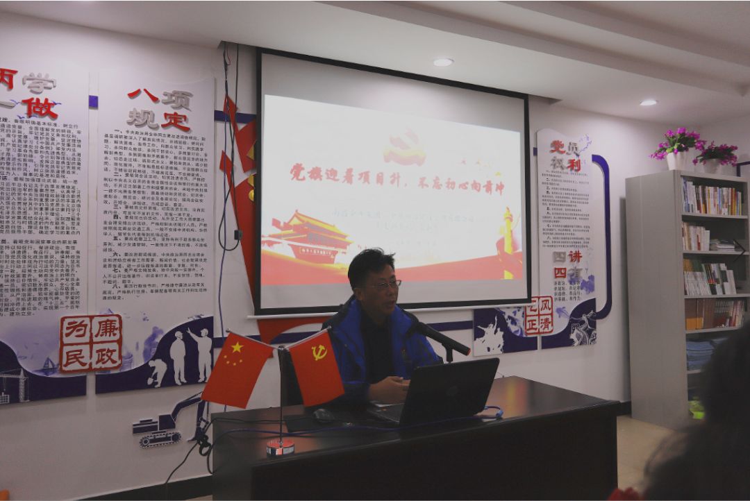 隨后,共建黨支部召開第一次會議。會上,雙方共同審議通過了共建黨支部黨員先鋒崗名單;并由袁扣華為大家帶來了一堂主題為“黨旗迎著項目飄 不忘初心向前沖”的黨課。